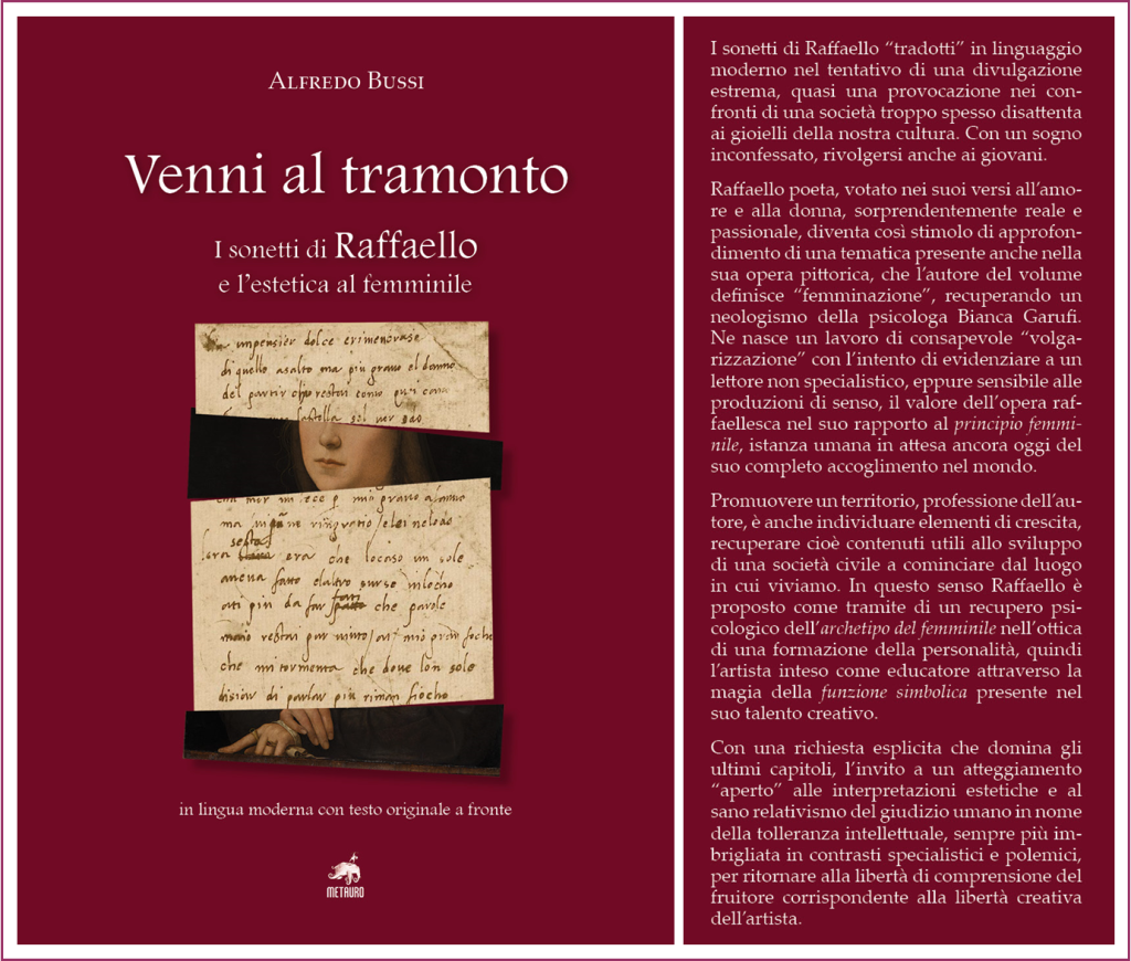 Bussi, Alfredo, Venni al tramonto – i sonetti di Raffaello e l’estetica al femminile, Metauro edizioni, 2020, Pesaro